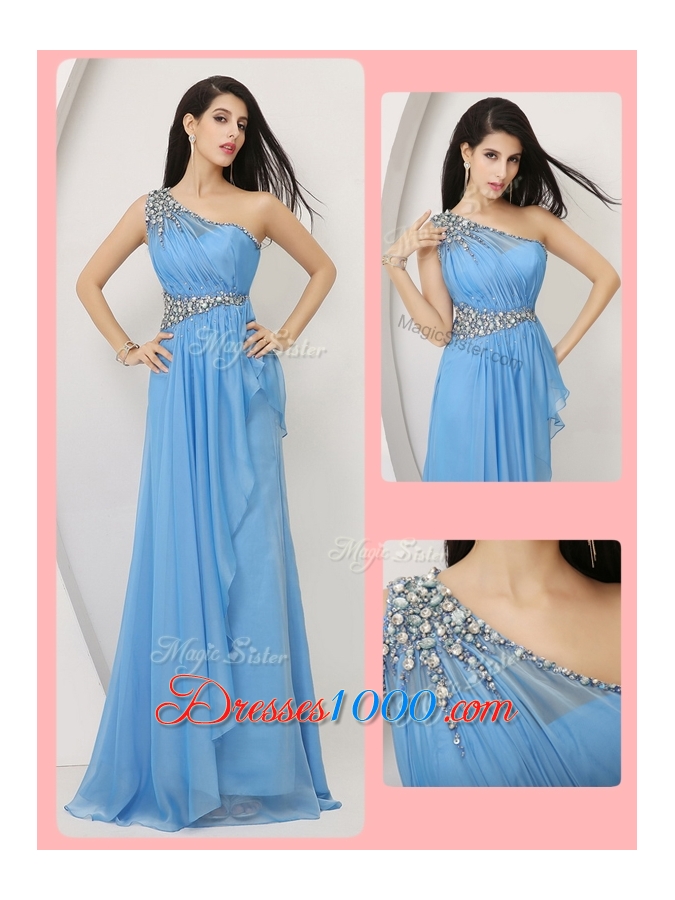 Elegant Empire One Shoulder Prom Dresses with Beading and Ruching