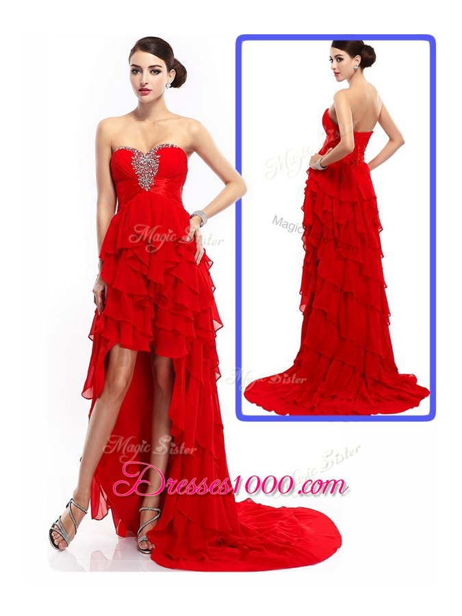 Elegant High Low Ruffled Layers Prom Dresses with Beading