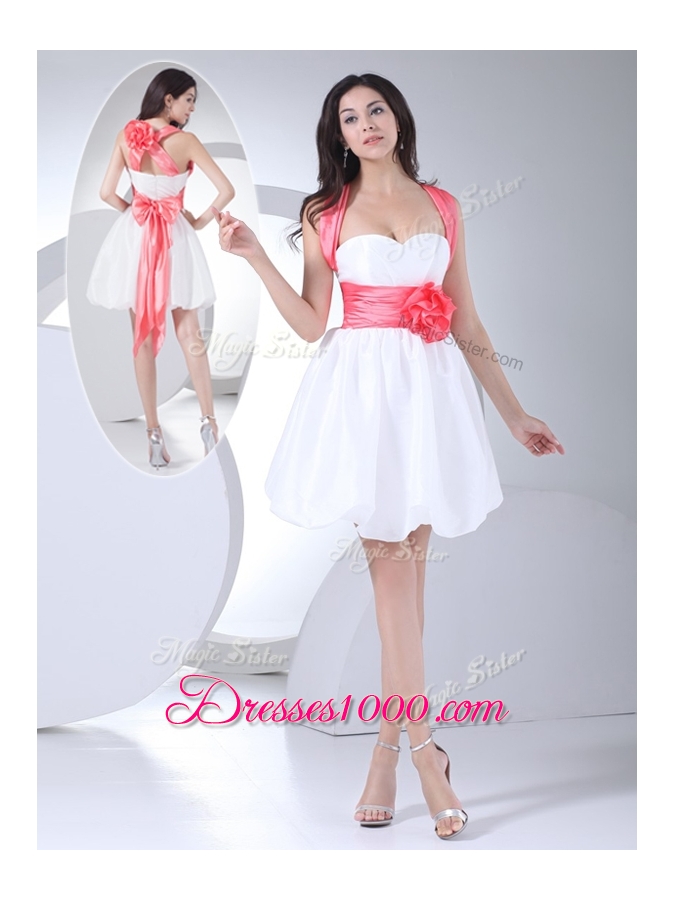 Elegant Straps Hand Made Flowers Short Prom Dress in White