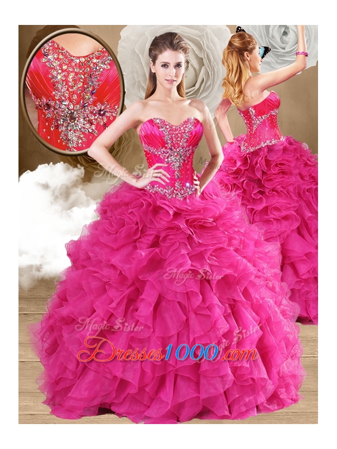 New Style Ball Gown Fuchsia Sweet 16 Dresses with Ruffles