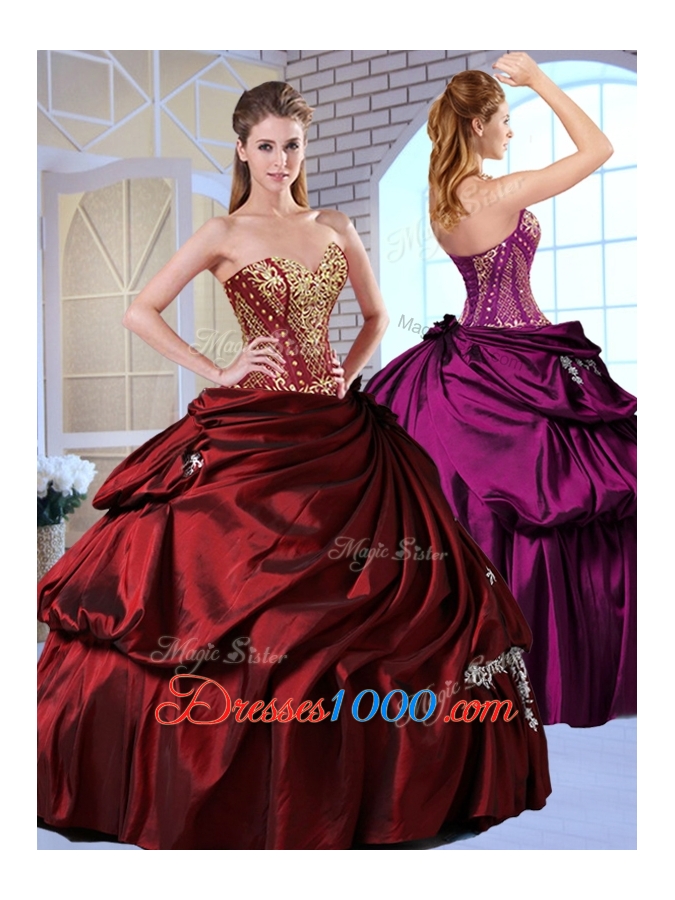 Gorgeous Ball Gown Taffeta Wine Red Quinceanera Gowns with Pick Ups