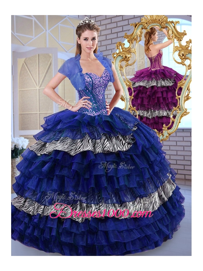 Beautiful Sweetheart Ball Gown Ruffled Layers and Zebra Quinceanera Dresses