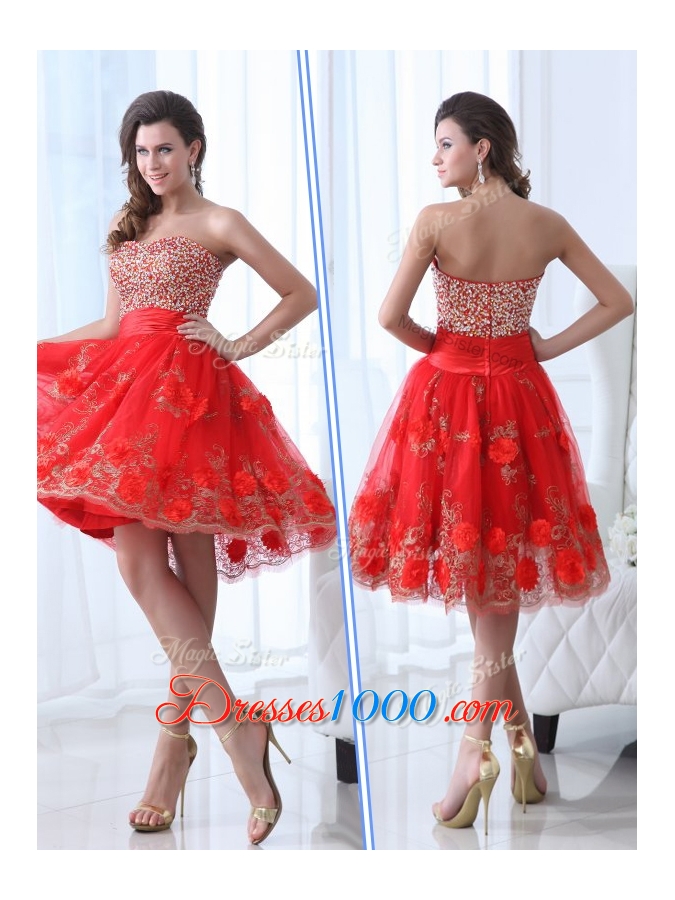 Lovely Sweetheart Red Prom Dress with Beading and Appliques