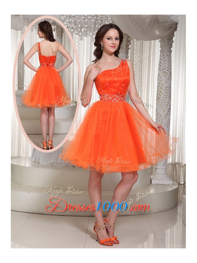 Lovely One Shoulder Beading Short Prom Dress for Party