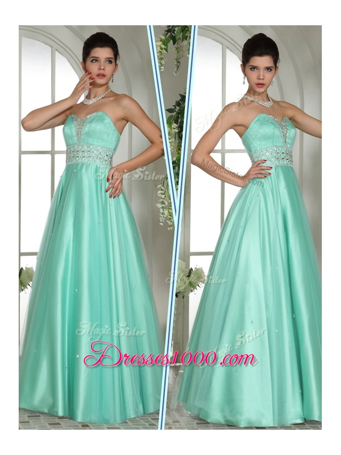 Lovely A Line Sweetheart Beading Prom Dresses in Apple Green