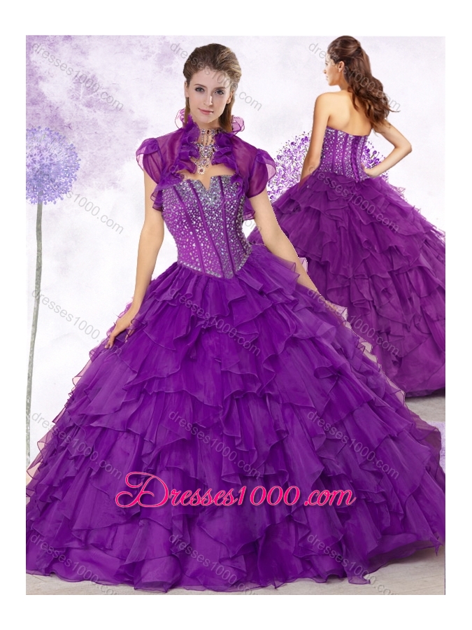 Latest Ball Gown Purple Quinceanera Gowns with Beading and Ruffles