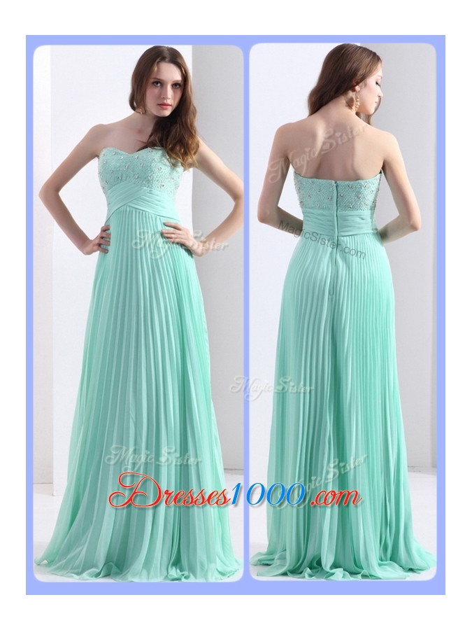 2016 Lovely Beading and Sequins Apple Green Prom Dresses with Brush Train
