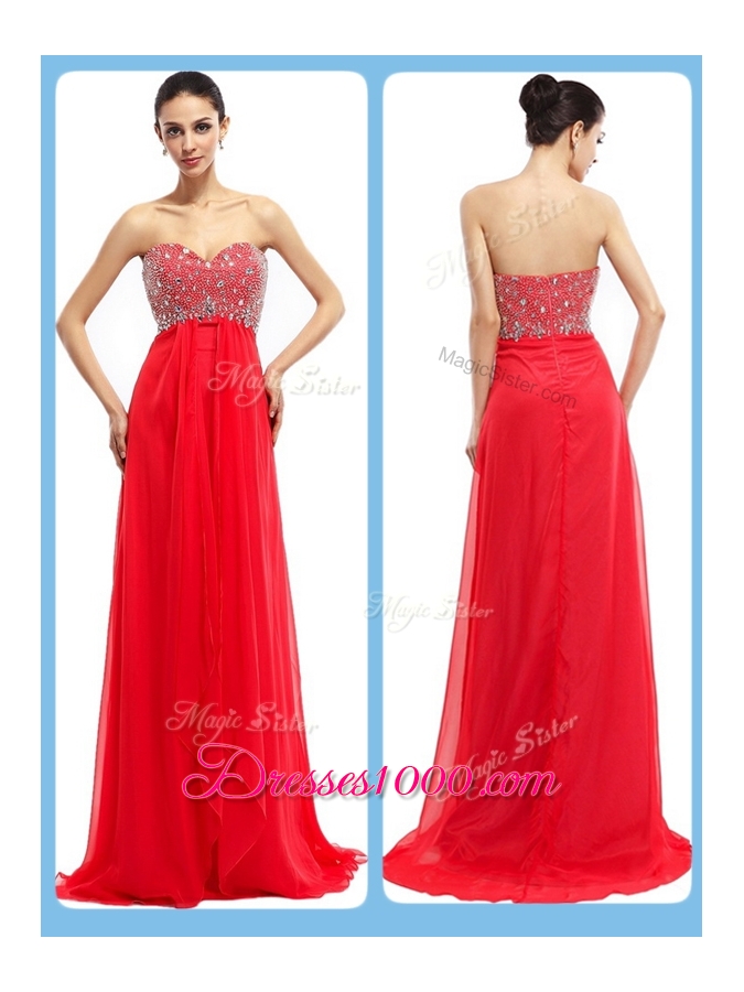 Lovely Sweetheart Brush Train Beading Prom Dresses in Red