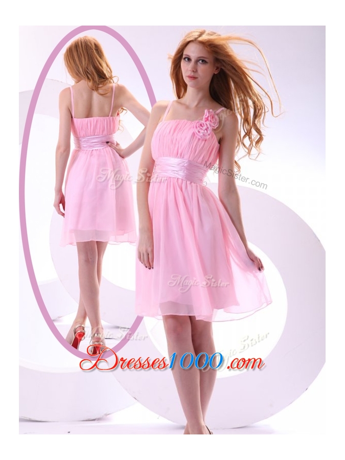 2016 Beautiful Short Pink Prom Dresses with Hand Made Flowers and Belt