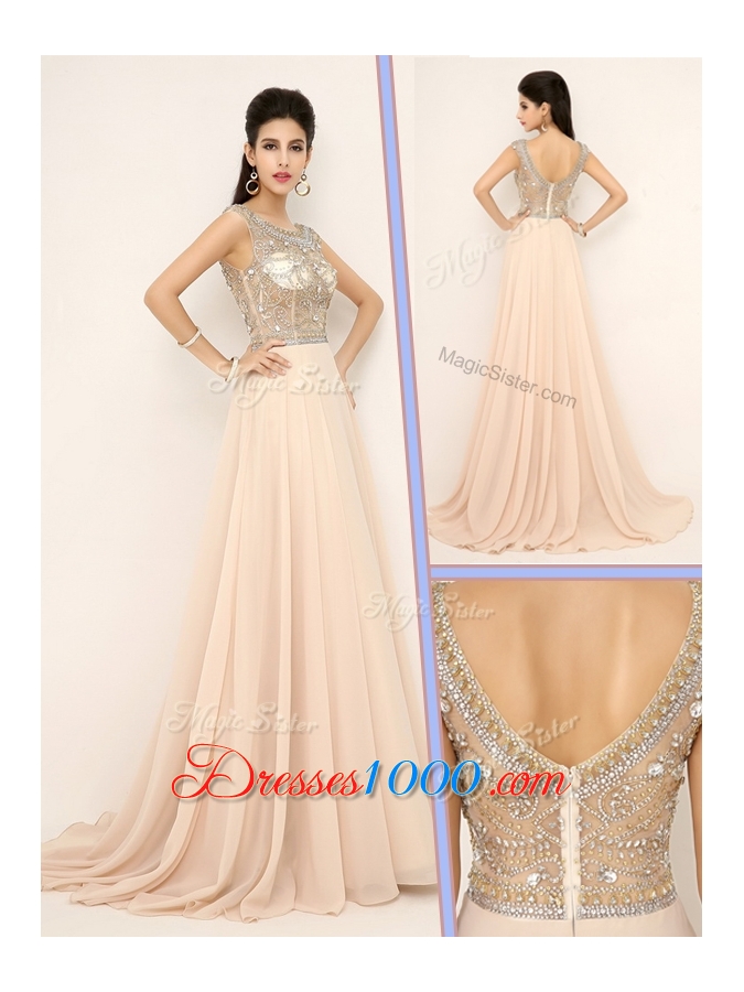 2016 Pretty Empire Bateau Brush Train Prom Dresses with Beading