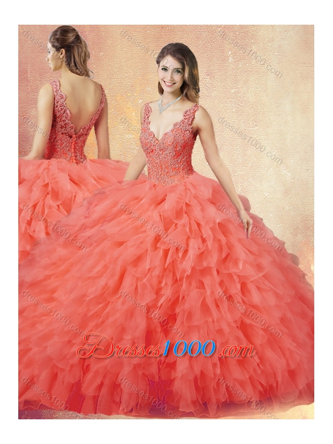 New Arrivals V Neck Sweet 16 Dresses with Ruffles and Appliques