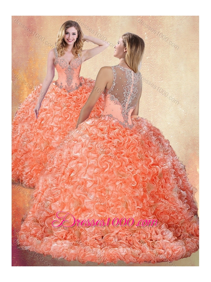 Beautiful Straps Brush Train Quinceanera Dresses with Ruffles and Appliques