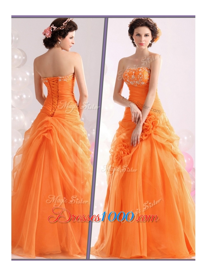 Hot Sale Strapless Beading Prom Dresses with Hand Made Flowers