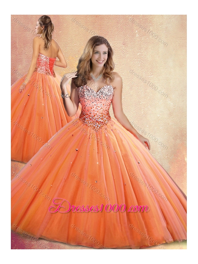 Customized Sweetheart Orange Red Quinceanera Gowns with Beading