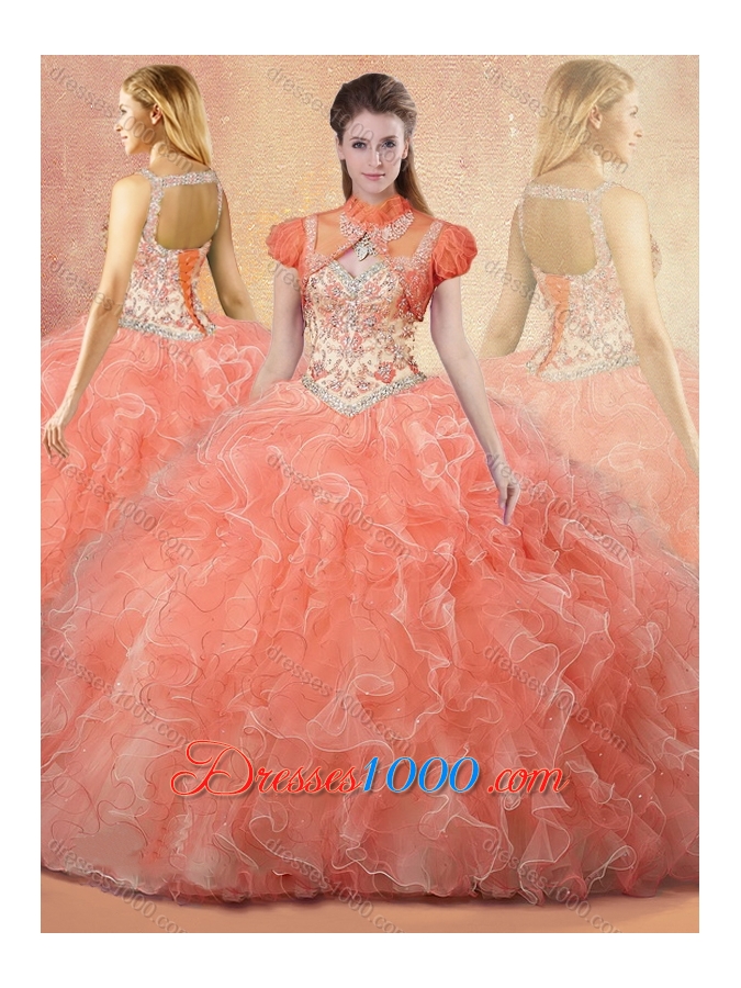 Romantic Straps Open Back Sweet 16 Dresses with Beading and Ruffles