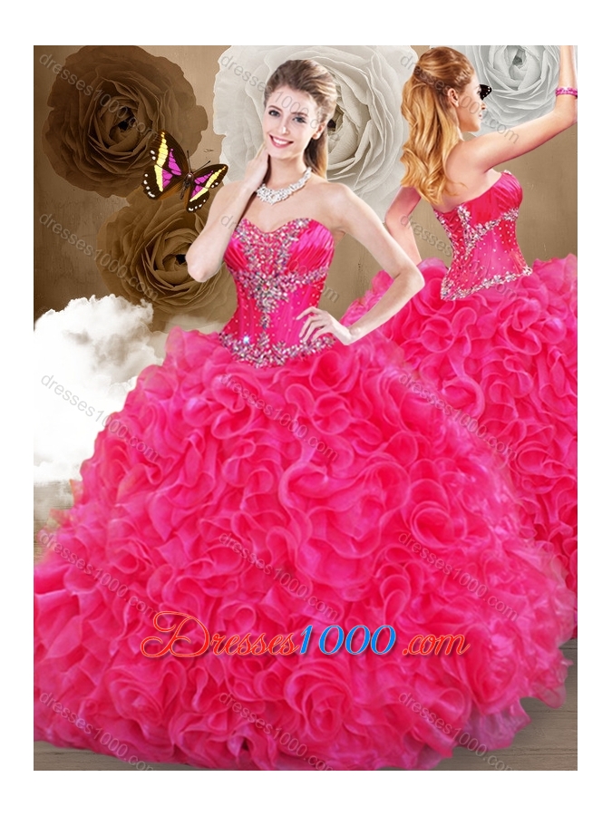 Pretty Hot Pink Sweetheart Quinceanera Gowns with Ruffles