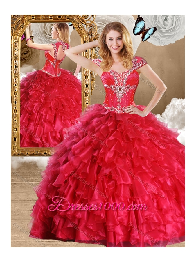 Fashionable Red Quinceanera Gowns with Beading and Ruffles