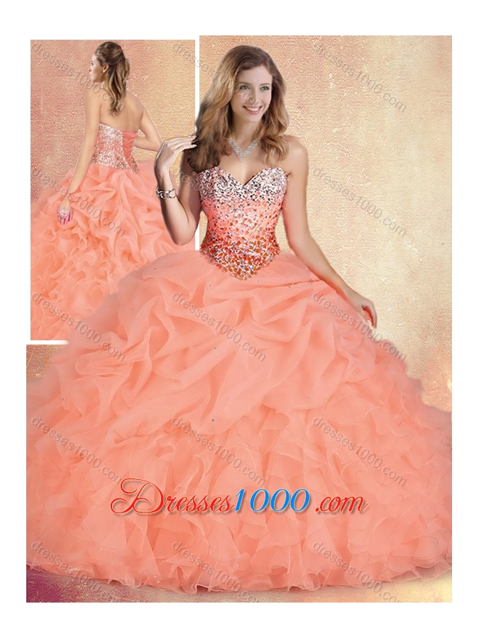 Popular Brush Train Sweet 16 Gowns with Ruffles and Bubles