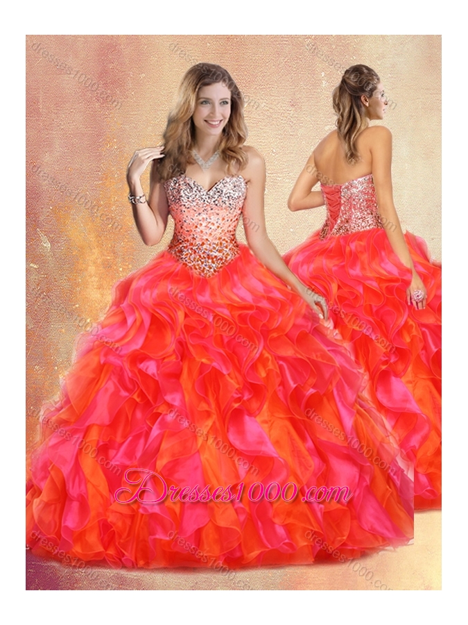 Pretty Ball Gown Multi Color Sweet 16 Gowns with Beading and Ruffles