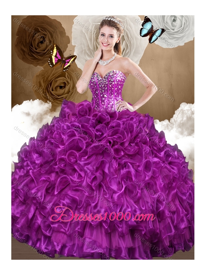 Beautiful 2016 Purple Sweet 16 Gowns with Beading and Ruffles