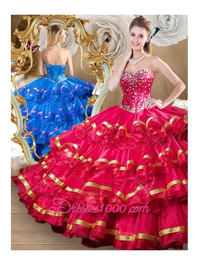 Perfect Red Sweet 16 Dresses with Beading and Ruffled Layers