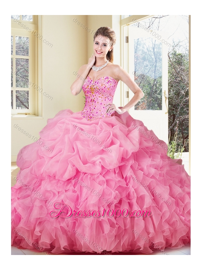 Lovely Ball Gown Rose Pink Quinceanera Dresses with Ruffles and Pick Ups