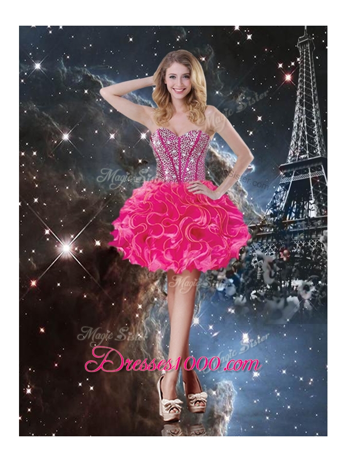 2016 Fashionable Sweetheart Hot Pink Detachable Quinceanera Gowns with Beading