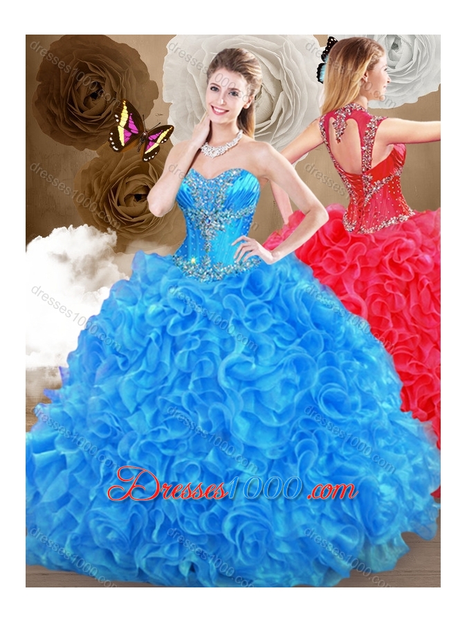 2016 Pretty Blue Sweet 16 Gowns with Beading and Ruffles