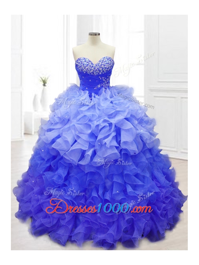 New Sweetheart Blue Quinceanera Gowns with Beading and Ruffles