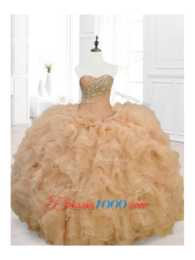 Beautiful Champagne Quinceanera Gowns with Beading and Ruffles