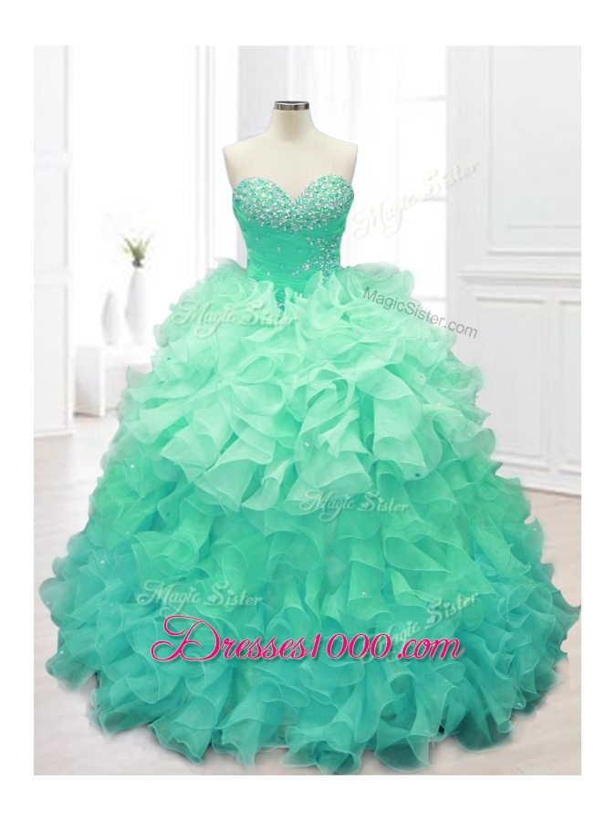 Beautiful Beading and Ruffles Sweet 16 Dresses in Apple Green