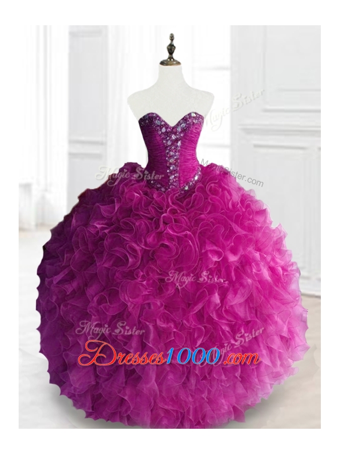 Fashionable Beading and Ruffles Quinceanera Dresses in Fuchsia