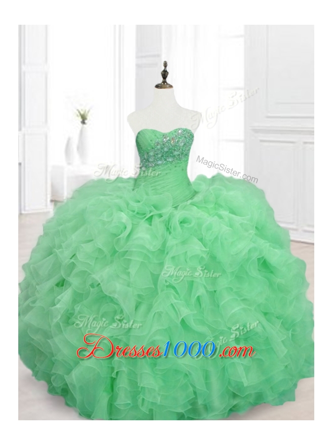 Elegant Beading and Ruffles Sweetheart Quinceanera Dresses in Green