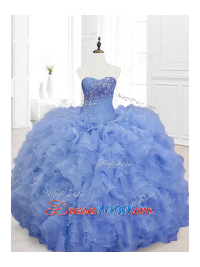 2016 New Style Blue Sweet 16 Dresses with Beading and Ruffles
