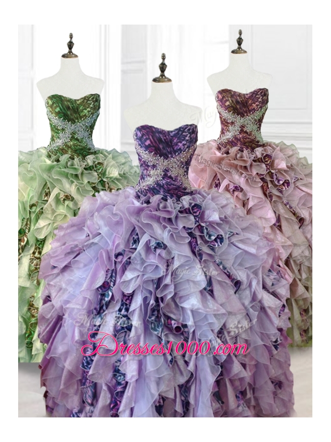 Luxurious Beading Multi Color Quinceanera Dresses with Ruffles and Pattern