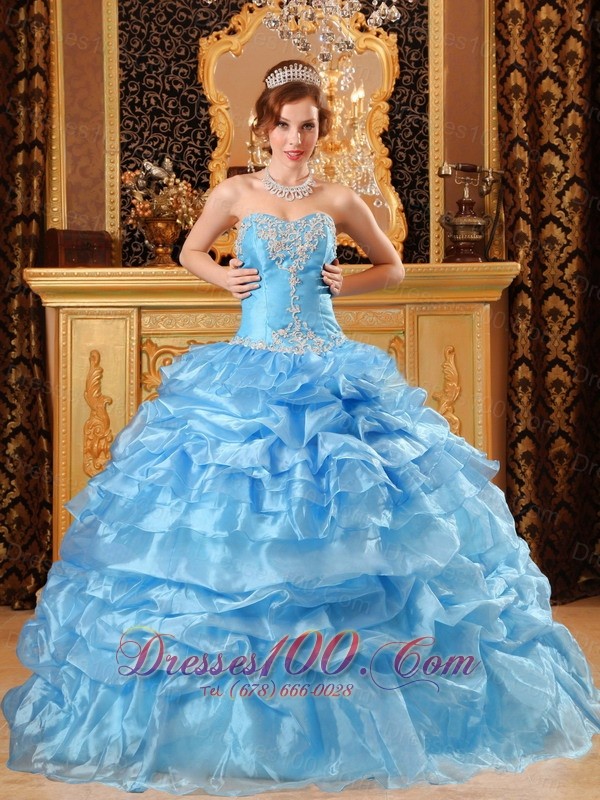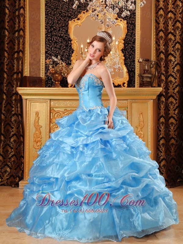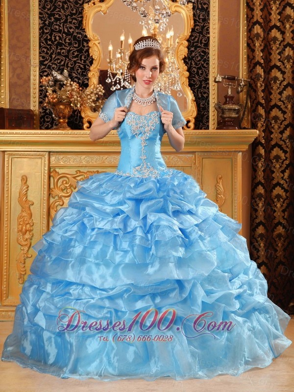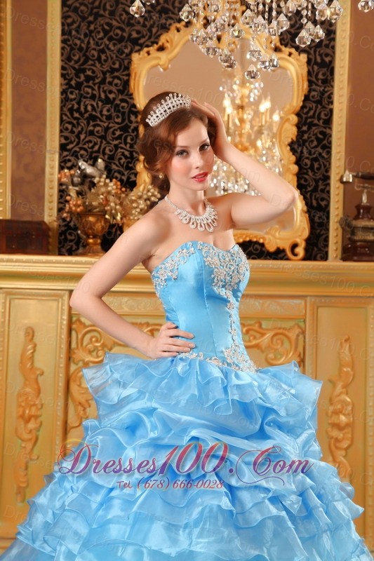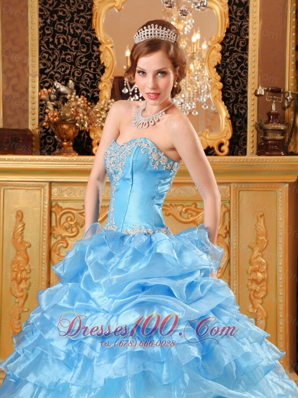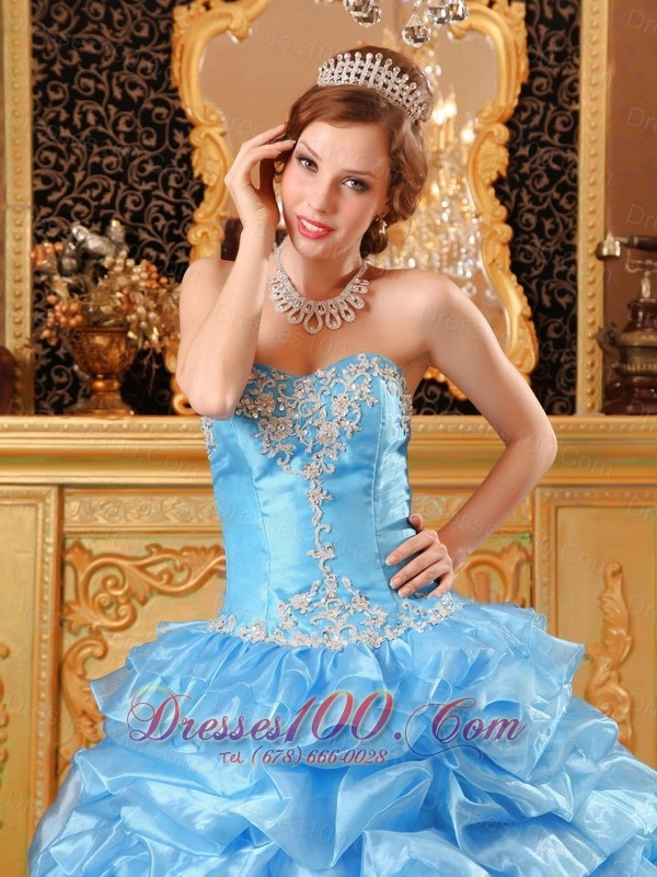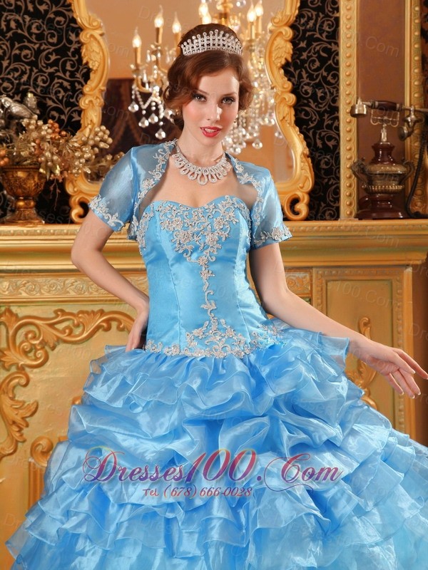 Aqua Blue Quinceanera Dress Appliques Sweetheart Organza