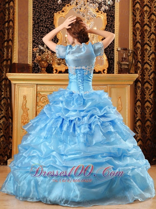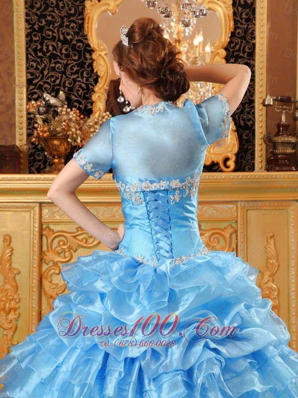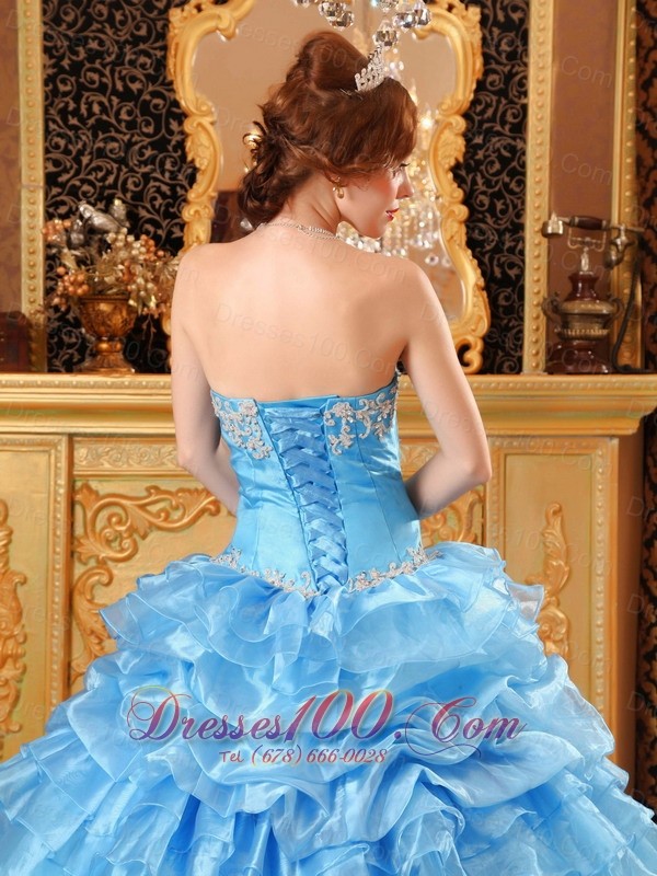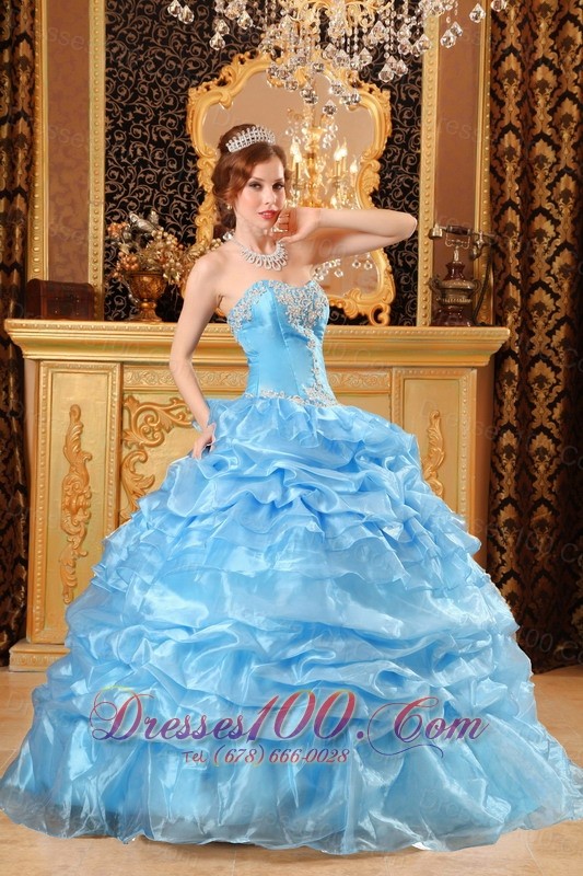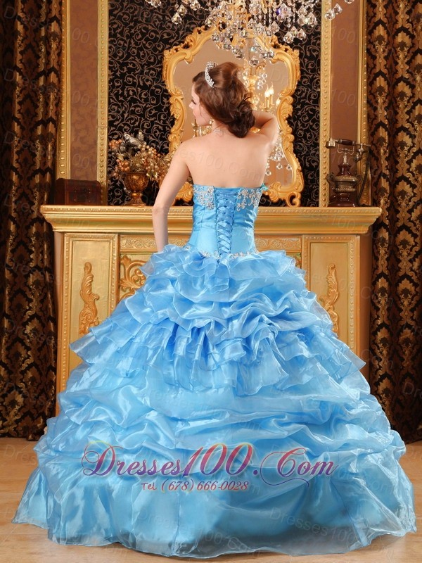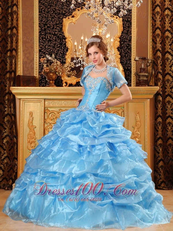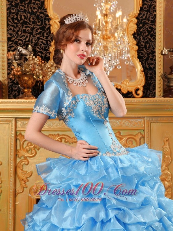 Aqua Blue Quinceanera Dress Appliques Sweetheart Organza
