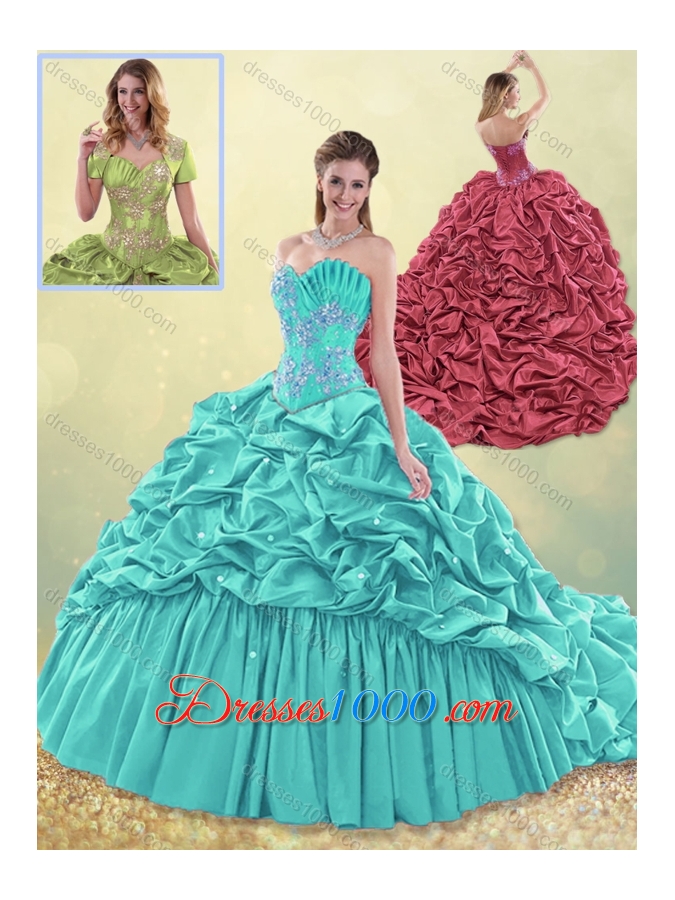 2016 Exquisite Brush Train Taffeta Quinceanera Dress in Aqua Blue
