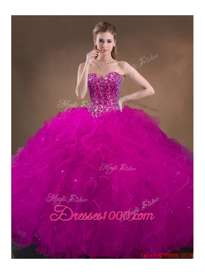 Custom Made Beaded and Ruffled Quinceanera Gowns in Hot Pink