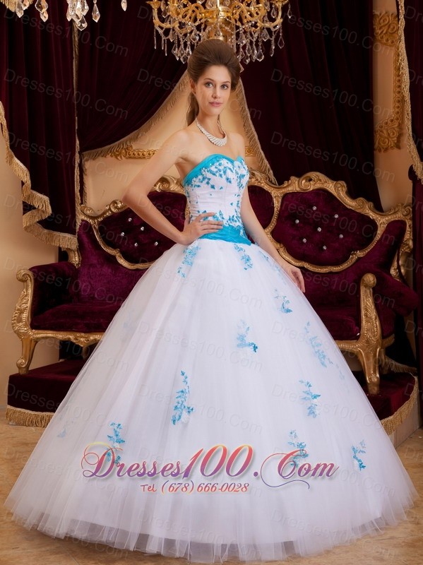 White A-line Ball Gown for Sweet 16 Sweetheart Appliques