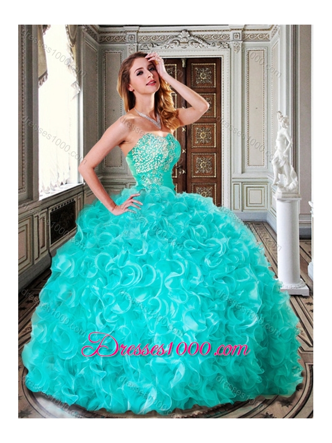 Ball Gown Turquoise Quinceanera Dresses with Beading and Ruffles