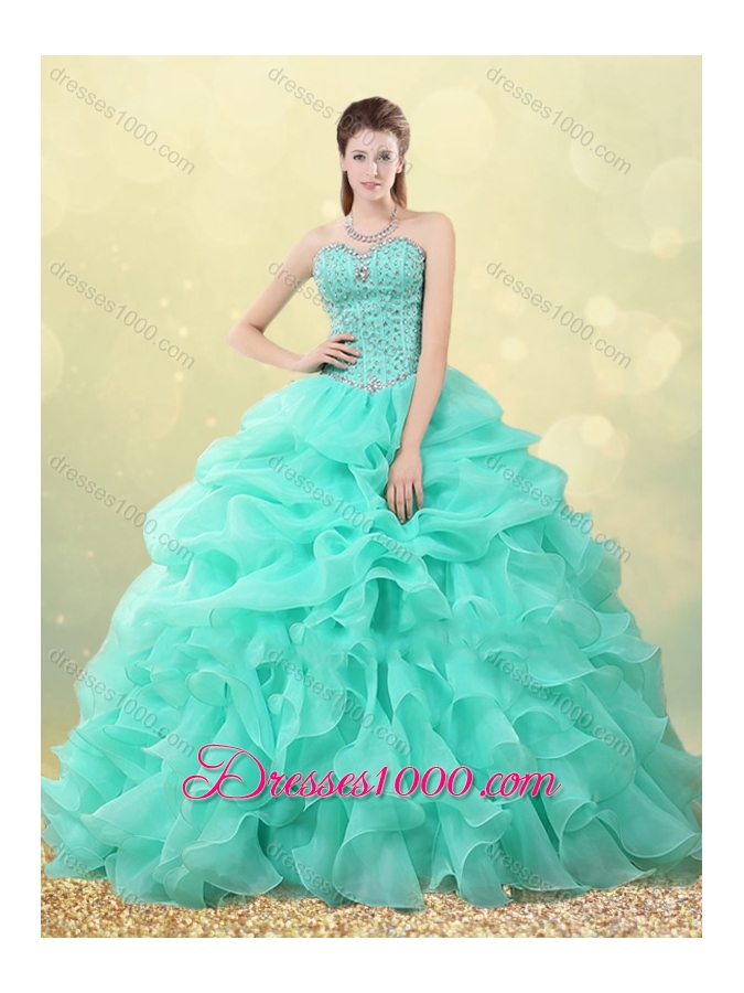 Big Puffy Apple Green Quinceanera Dress with Beading and Bubbles
