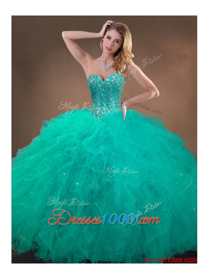 New Arrivals Beaded and Ruffles Quinceanera Gowns in Turquoise