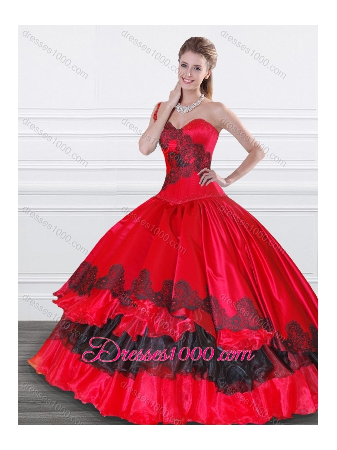 Exquisite Applique Red and Black Quinceanera Dress in Organza and Taffeta