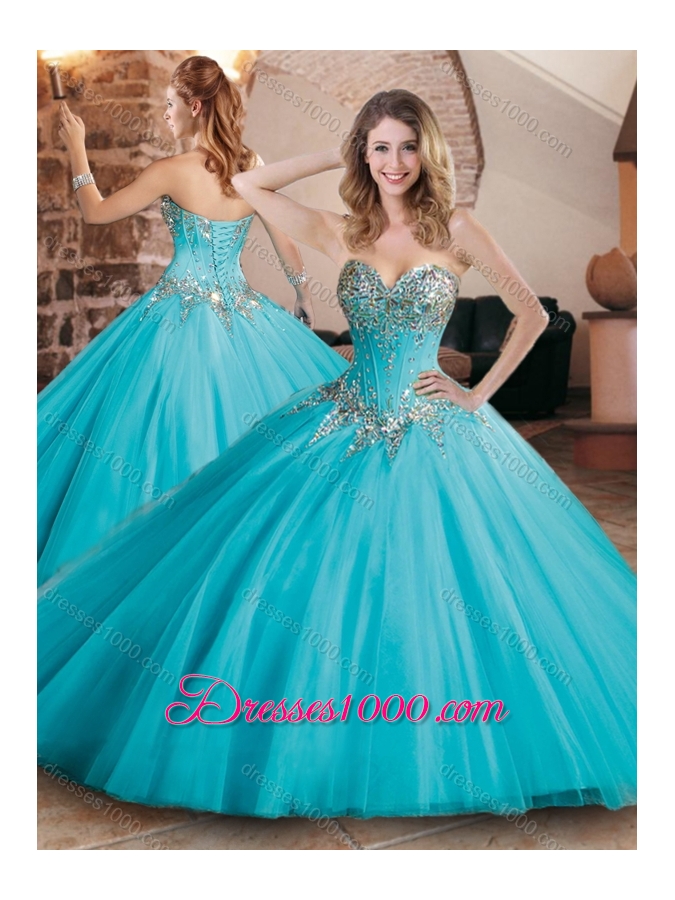 Pretty Visible Boning Tulle Beaded Quinceanera Dress in Aqua Blue