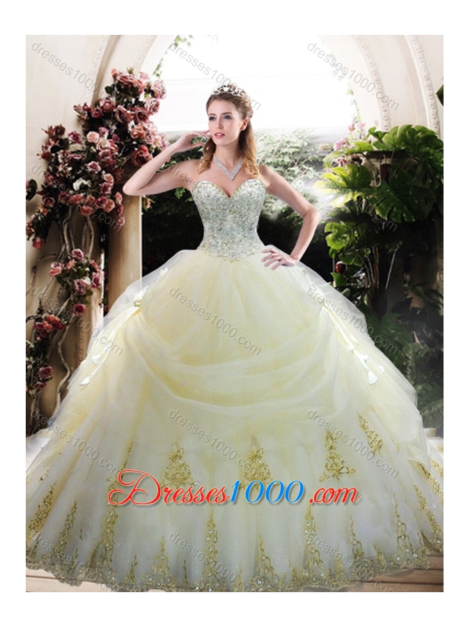 2016Custom Designed White Quinceanera Gown with Appliques and Beading