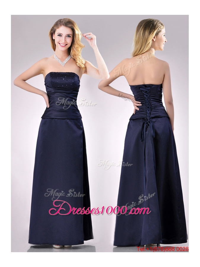 Fashionable Strapless Beaded Bust Long Mother of Bride Dress in Navy Blue