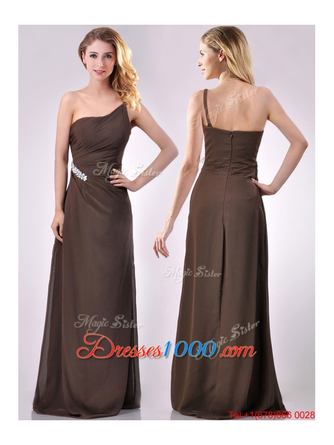 Low Price One Shoulder Taffeta Beaded Mother of Bride Dress in Brown