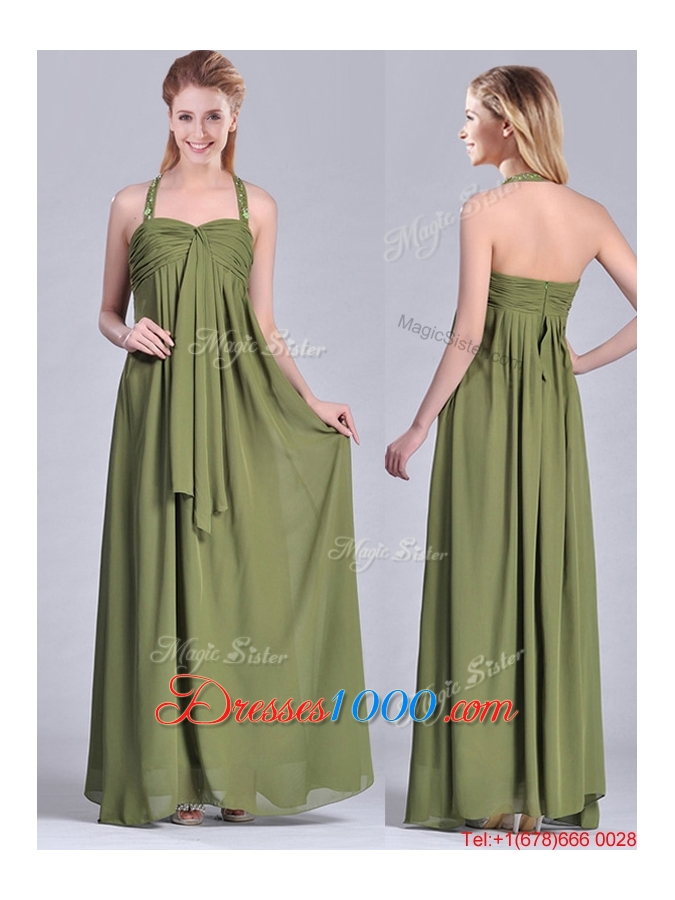 Latest Beaded Decorated Halter Top Mother of Bride Dress in Olive Green