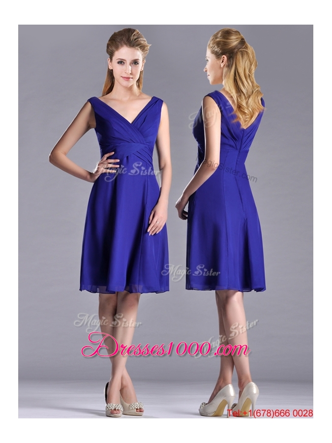 Modest Empire Chiffon Zipper Up Mother of Bride Dress with V Neck